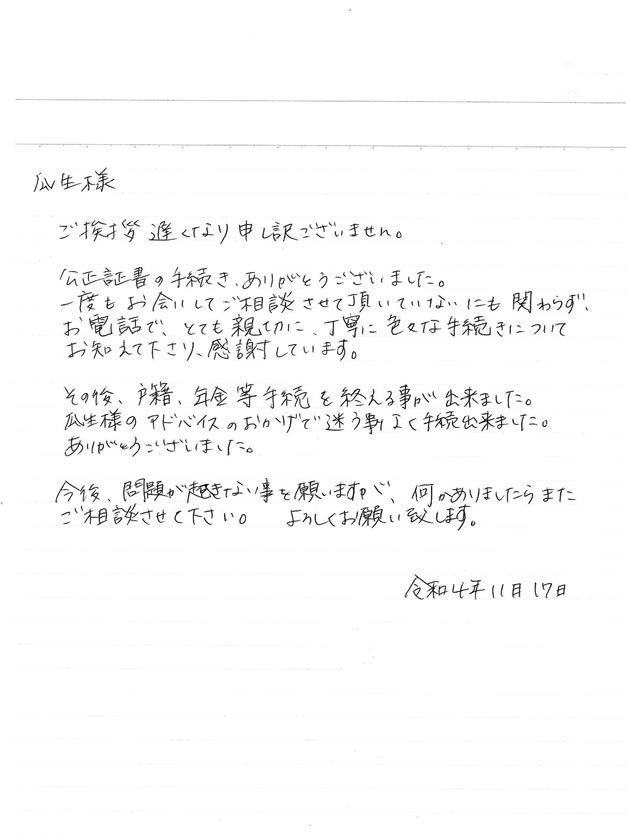 公正証書の手続き、ありがとうございました。