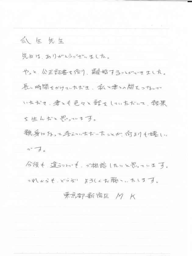 新宿区在住MK様 (50代前半)離婚 公正証書作成