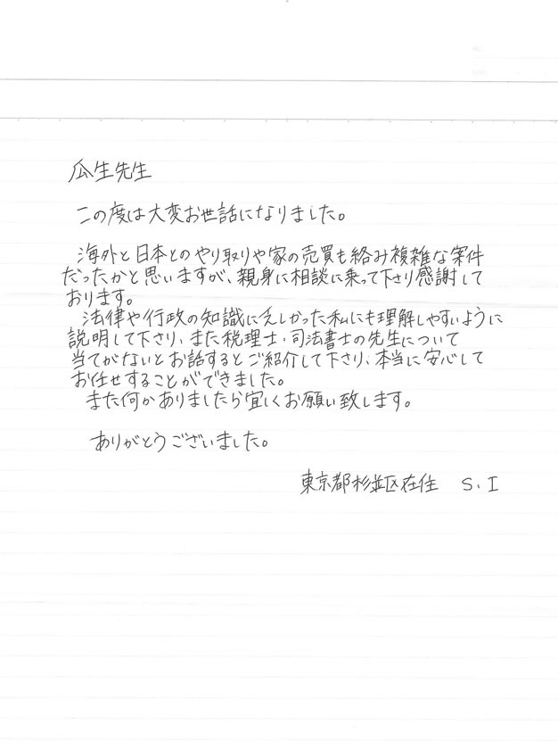公正証書サポートサービスをご利用いただきました、お客様の声をご紹介させていただきます。